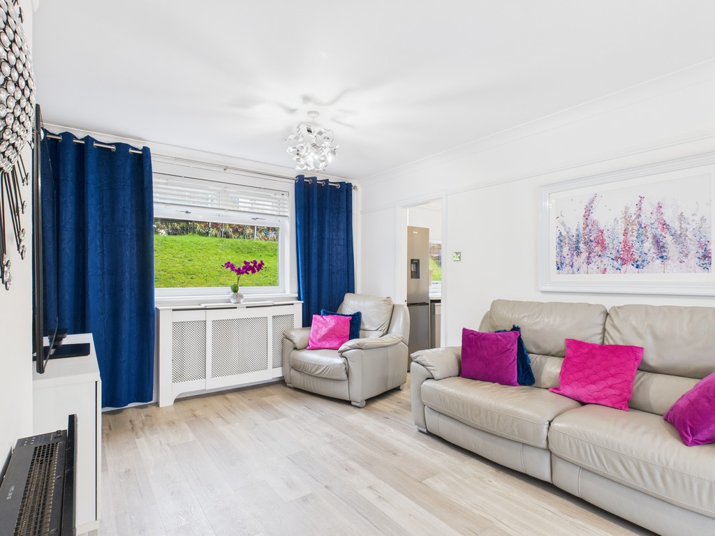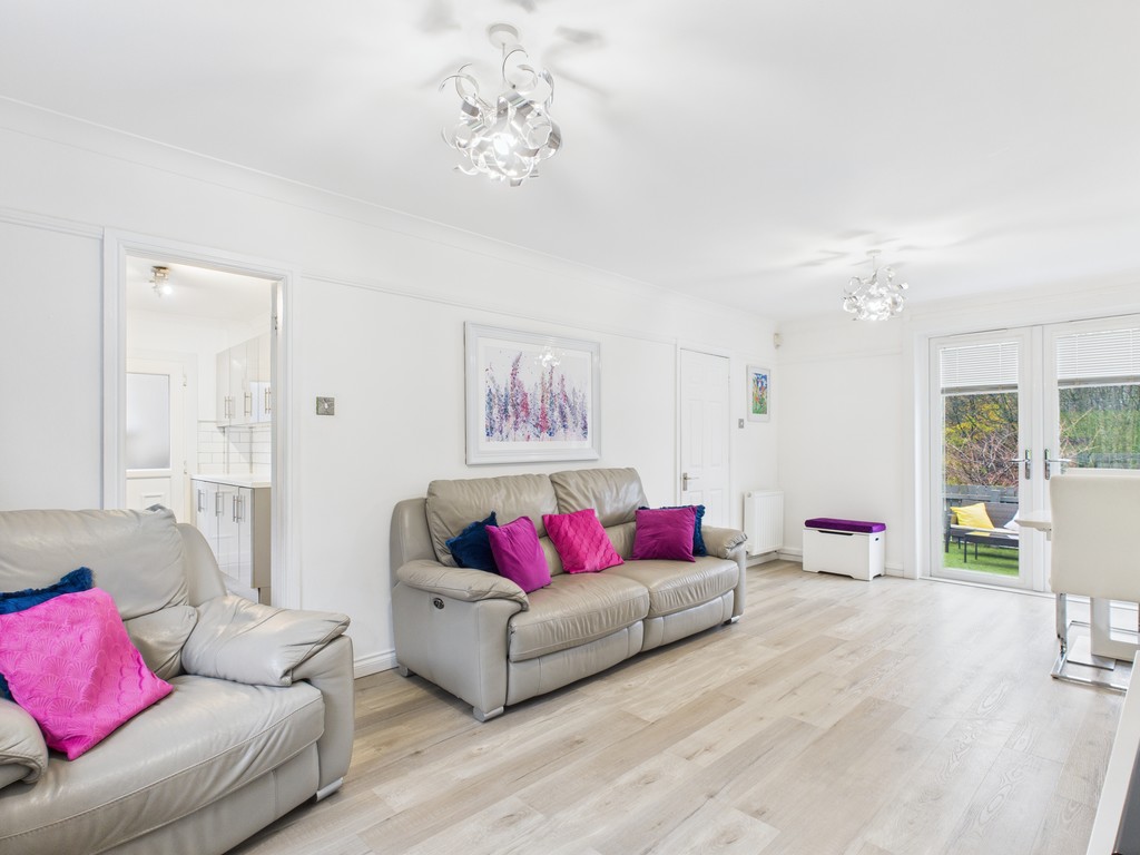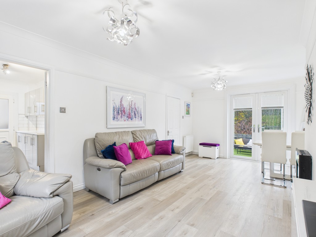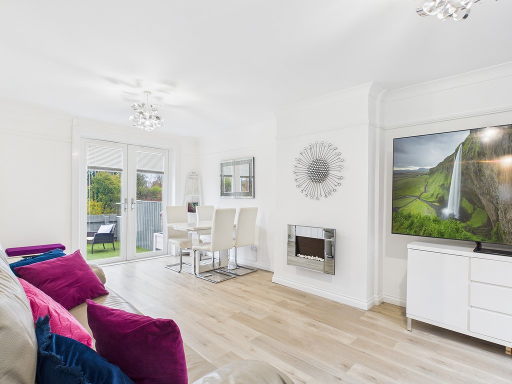 The spacious lounge and dining area enjoys exceptional natural light courtesy of its dual-aspect windows, including the striking patio doors to the front garden. Finished with modern flooring, neutral tones, and generous proportions, this room offers the perfect blend of warmth and contemporary style, with ample space for both living and dining furniture.