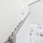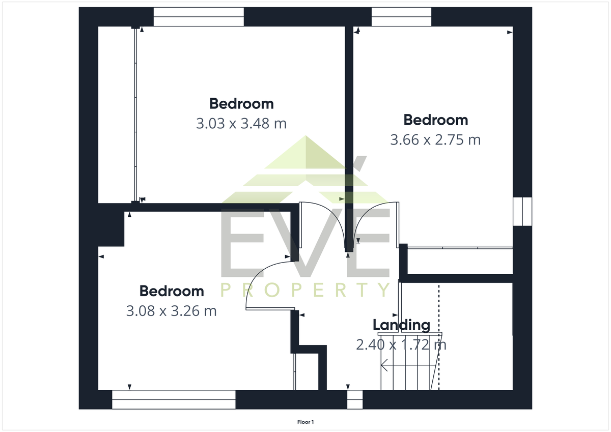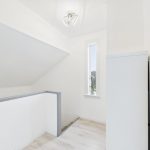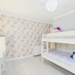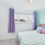 The upper landing is accessed via a staircase finished with plush charcoal carpeting, leading to three well-proportioned double bedrooms. Light oak flooring continues throughout, enhancing the sense of flow and warmth. Each room benefits from large picture windows that fill the space with natural light, while the master bedroom boasts impressive floor-to-ceiling fitted wardrobes, providing excellent storage. All bedrooms comfortably accommodate a variety of furnishings.