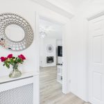 The welcoming hallway features crisp white décor and contemporary grey laminate flooring that continues seamlessly through to the lounge and kitchen. A large walk-in cupboard provides excellent storage and currently houses a tumble dryer with power.