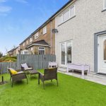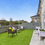 Access is gained via steps leading up to the attractive and private front garden, designed for low maintenance with a sleek paved pathway, artificial lawn, and modern wooden fencing. This sun-filled space enjoys direct access from the lounge via French patio doors, creating a wonderful indoor-outdoor flow.