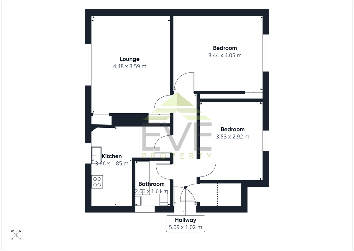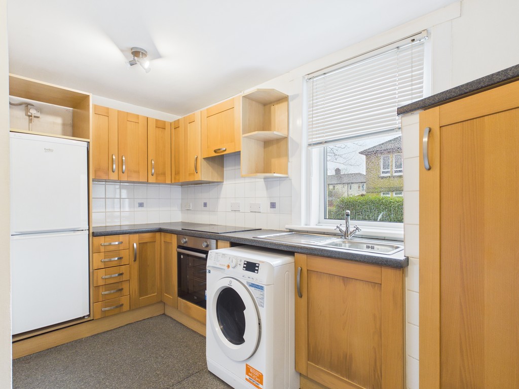 The accommodation comprises a welcoming entrance hallway with large storage cupboard and access to all apartments, a spacious lounge with large windows allowing an abundance of natural light, and a fitted kitchen with shaker style wall and floor mounted cabinets, complete with electric hob, oven, freestanding fridge freezer and washing machine.