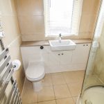 This well presented apartment offers welcoming hallway with internal carpeted staircase to upper landing with lounge, bedrooms and shower room off. The lounge is positioned to the front with a large picture window flooding the room with natural light. The lounge area is furnished with two arm chairs and dining table and chairs. The kitchen off the lounge offers an array of wall and base units and is equipped with double electric oven, gas hob and integrated under counter fridge and freezer. A handy utility cupboard houses the washing machine. Both bedrooms are double sized and well-proportioned with tranquil views of the front and rear gardens - mirrored wardrobes provided in one bedroom. The shower room completes the accommodation and comprises full wall tiling and white suite including vanity unit. The shower enclosure has an electric wall mounted shower.