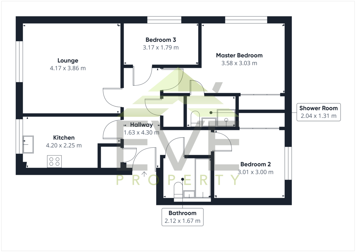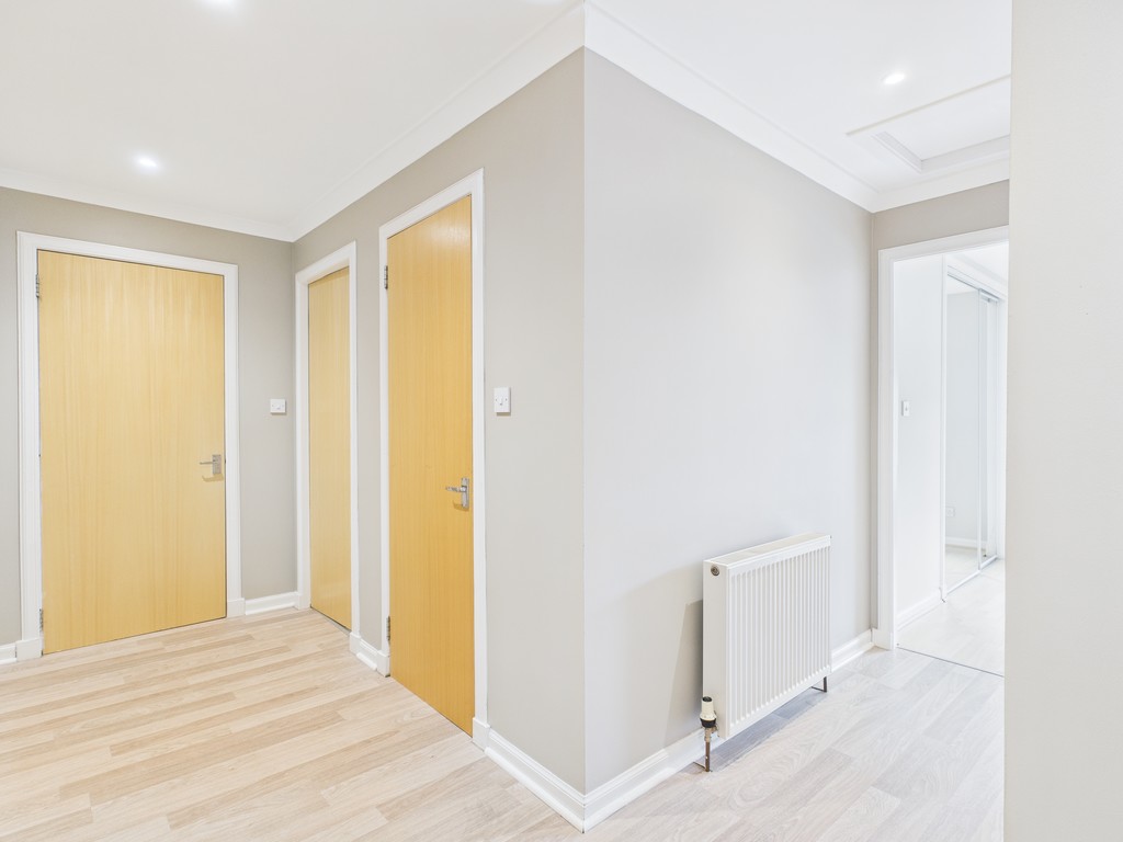 The accommodation on offer comprises reception hallway with two large storage cupboards and all apartments off. Bright lounge with large picture window with open views to the front and spacious enough to accommodate a range of modern furnishings. Two double bedrooms with fitted wardrobes, the master bedroom offers an ensuite shower room. There is an additional third bedroom that could be utilised as a nursery, single room or study. The kitchen is equipped with an electric oven, gas hob, washing machine and fridge freezer. The family bathroom completes the internal specification and offers a white three piece suite with shower over bath.