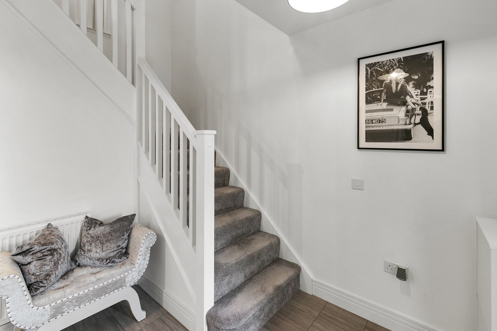 Set in a peaceful enclave nestled amongst similar style family homes the care and attention to detail is apparent from the outset, with a manicured lawn and large mono block double driveway providing the backdrop to the crisp white render and faux sandstone framing the lower half of the property. The charcoal grey composite door is finished with frosted glass panels in a lattice design and sophisticated lighting provides a sense of security and fully illuminate the entrance of the house.