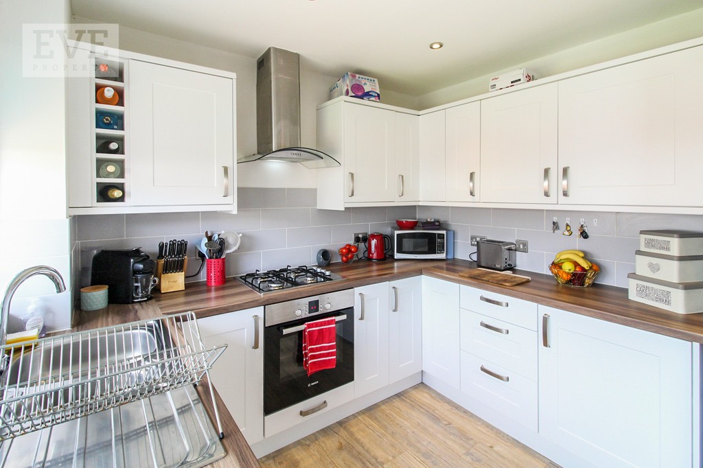 Entrance to the property is via a good sized reception porch offering a functional extension to this family home. Internally this property comprises spacious lounge/dining room tastefully decorated in neutral colours and fitted carpeted flooring and with dual aspect windows allowing natural light to showcase the rooms features. Beautifully fitted modern shaker style kitchen fully equipped with electric oven, four burner gas hob and integrated dishwasher. The kitchen further benefits from a range of fitted white units allowing for plentiful storage solutions throughout. This fabulous kitchen is complimented throughout with fresh décor, fully tiled splash back and fitted worktop. The hallway offers a large storage cupboard/utility room currently utilised for storage and to house a washing machine. The first floor offers two generous sized bedrooms, both offering built in storage, neutral décor and quality carpet. The family bathroom offers a white three piece suite with premium fixtures including vanity unit, mixer power shower over bath, glass shower screen and decorated with waterproof wet wall panelling. The current owners have extended the property with a fixed carpeted staircase into the attic offering a generous sized third bedroom and additional storage. This property further benefits from full thermostatically controlled gas central heating with individual radiator thermostats, double glazing, front and rear enclosed gardens and driveway.