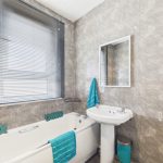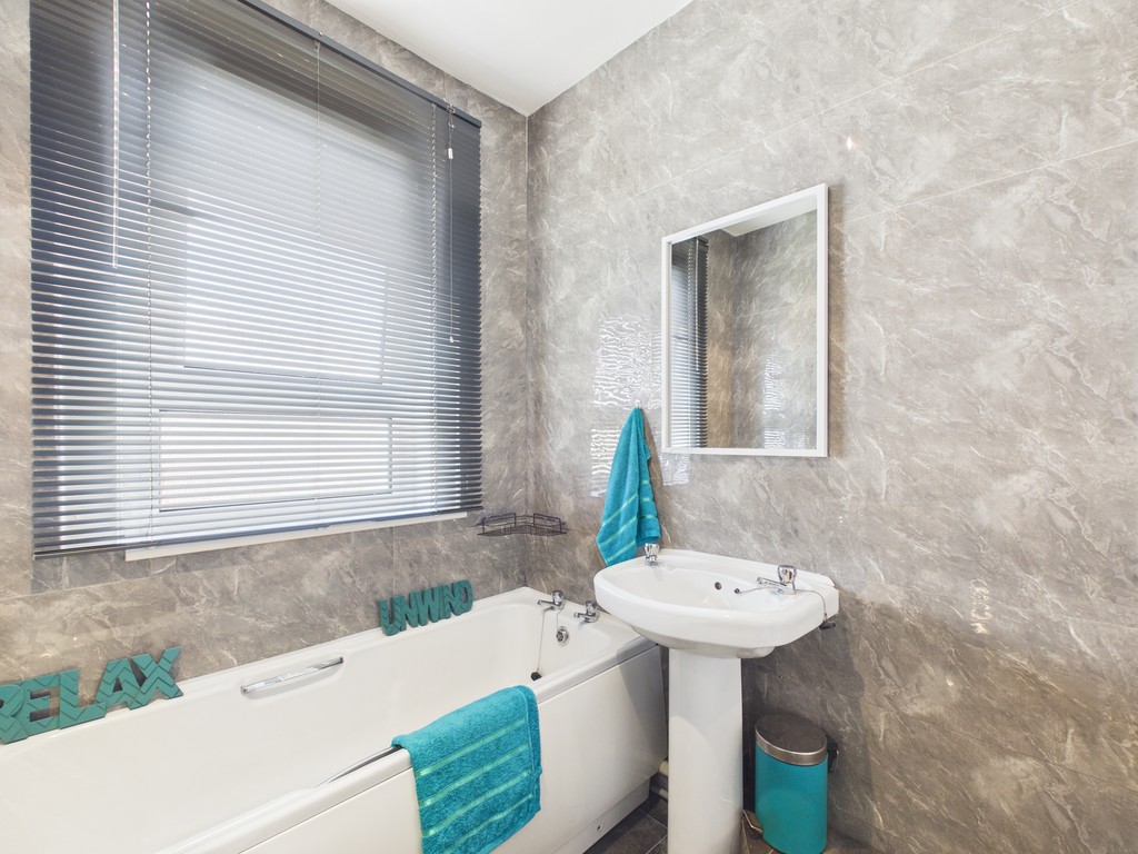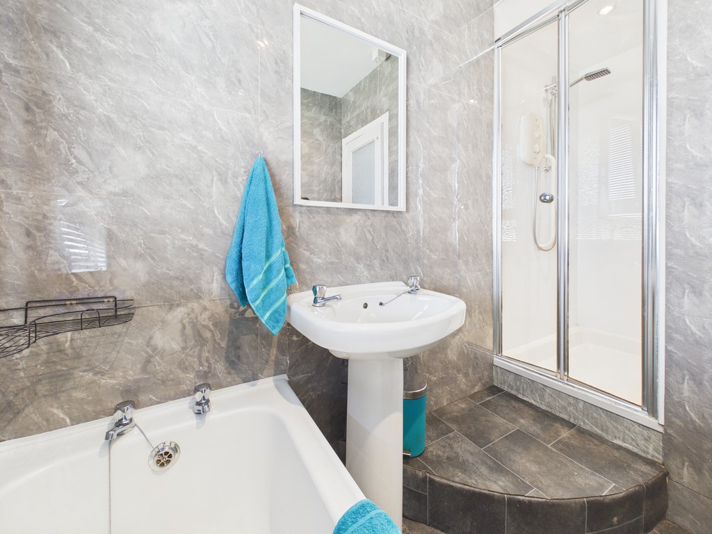 The bathroom has been upgraded to offer both bathing and showering facilities, comprising a white three-piece suite alongside a separate shower cubicle.