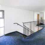Positioned in lovely manicured gardens the honey brick and crisp white rendered building is particularly light and bright, housing just eight neighbouring properties. Large picture windows and secure entry glass door coalesce beautifully with high walls and ceilings in matte white with contrasting navy carpets flowing throughout the factored communal close.
