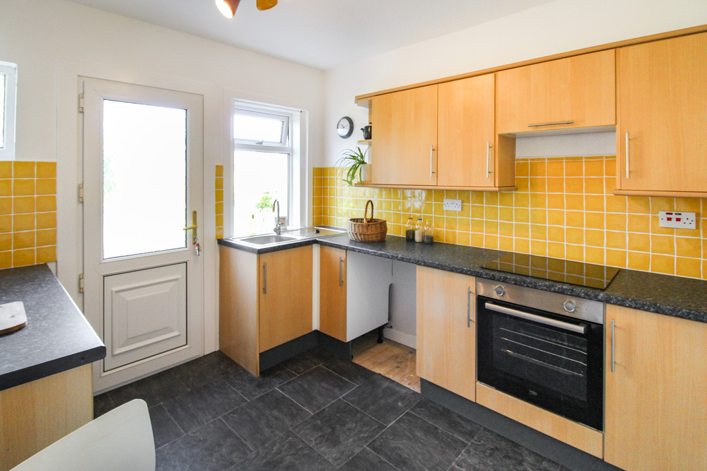 Upon entering the property, you are greeted by the bright and spacious hallway, with modern décor and oak flooring, a stylish finish that is found throughout the home. The lounge, positioned to the front of the property, boasts a generous bay window that floods the space with natural light, creating a warm and inviting atmosphere. Just off the lounge, the kitchen is well laid out with ample cabinetry, laminate worktops, and integrated electric oven and hob and offer's open space for both a washing machine and fridge-freezer. The rear door offers direct access to the private garden, ideal for outdoor relaxation or entertaining.