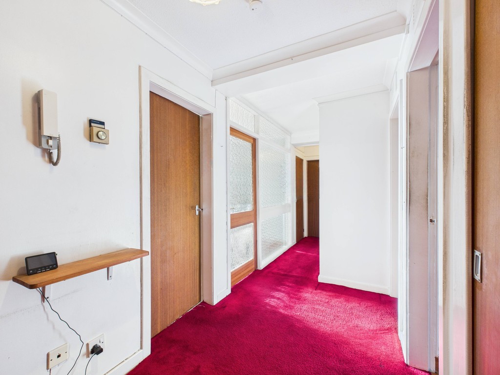 Entry to the building is via a secure door entry system, leading into a well-kept communal hallway and carpeted staircase. Large picture windows flood the shared areas with natural light, creating a bright and welcoming atmosphere. No. 62 is located on the first floor, sharing the landing with just one neighbouring property.