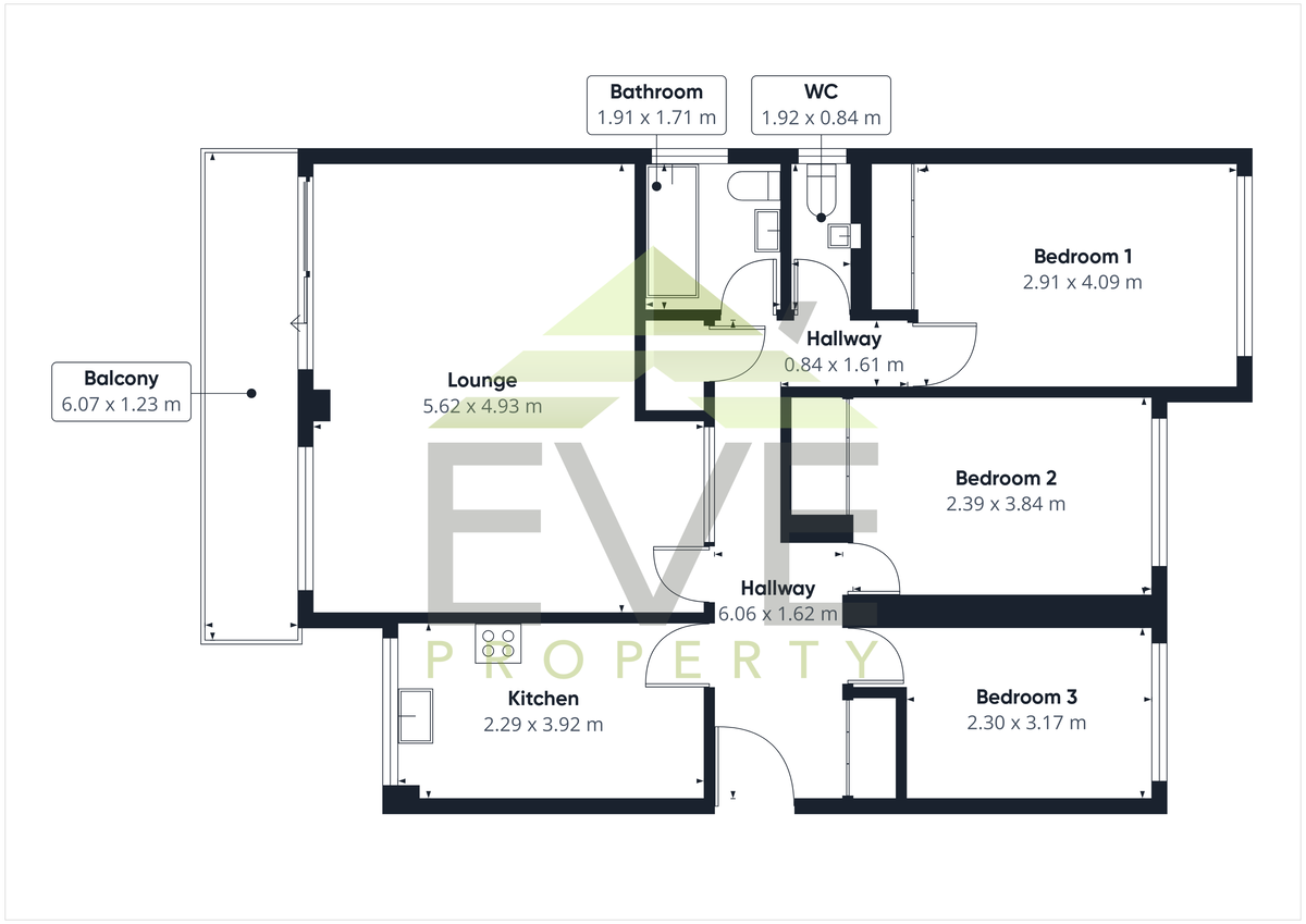 Entry to the building is via a secure door entry system, leading into a well-kept communal hallway and carpeted staircase. Large picture windows flood the shared areas with natural light, creating a bright and welcoming atmosphere. No. 62 is located on the first floor, sharing the landing with just one neighbouring property.