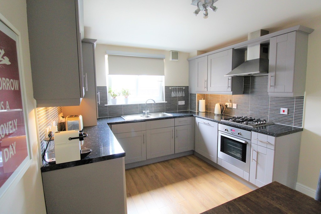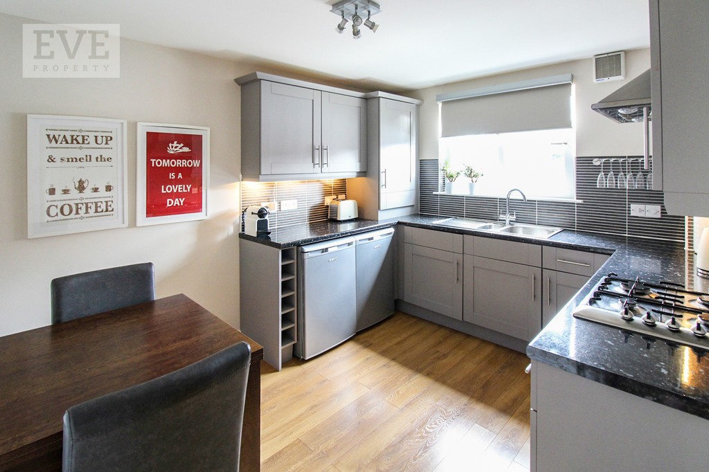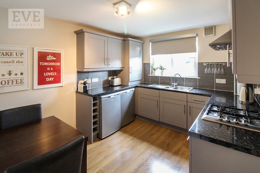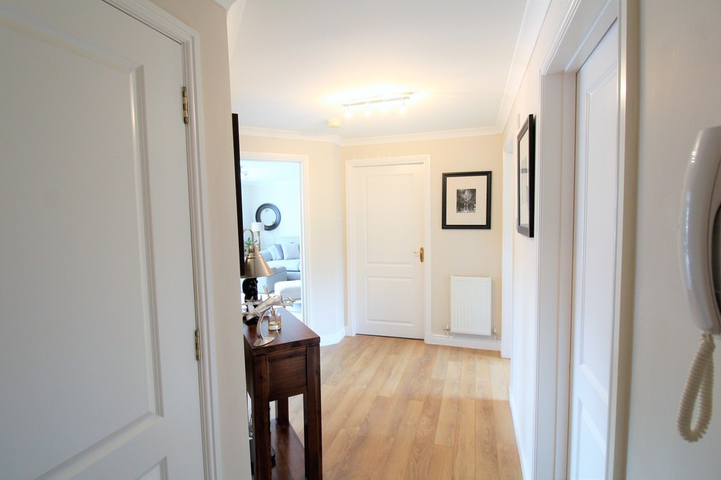 The entrance to the property is via a secure door entry system and boosts a fully carpeted communal close area. Upon entry through the front door you are immediately impacted by the space this property has to offer. The reception hallway offers fresh neutral decoration with en-trend wide panelled wood flooring, handy storage cupboard and with all rooms leading off. The bright spacious lounge showcases a beautiful large bay window with Juliete balcony which allows natural light to flood the room. This room has been thoughtfully decorated and designed by the current owner in cream and white finishes which continues as a theme throughout the property. Moving into the kitchen you are greeted with a shaker style grey fitted kitchen fully equipped with integrated washing machine, dishwasher, built in electric oven, four burner gas hob with under counter fridge and freezer included. The kitchen can accommodate a dining area and further benefits from neutral décor, fully tiled splash back, fitted worktops and a range of fitted units allowing for plentiful storage solutions throughout. The property offers two double bedrooms both freshly decorated in neutral tones with quality thick pile cream carpet and with the added benefit of built in fitted wardrobes. The master bedroom includes an en-suite shower room with electric shower, shower cubicle and white two piece suite. The family bathroom is partially tiled and offers three piece suite. The property is further enhanced with full thermostatically controlled gas central heating with individual radiator thermostats, double glazing, secure door entry system and resident and visitors private parking. The property on offer has been very well maintained by the current owner and is located on the ground floor of a two storey building with only four properties.