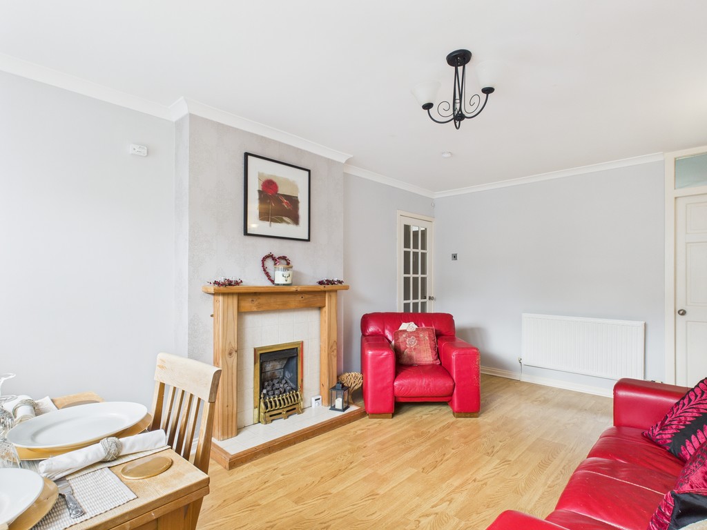 The property is accessed via a welcoming reception hallway, tastefully decorated in neutral tones and benefiting from a generous storage cupboard. Laminate flooring extends seamlessly from the hallway through to the lounge and both bedrooms, enhancing the sense of flow and space throughout. The bright and spacious lounge enjoys pleasant views over the private front garden and offers ample space for a dining suite, making it ideal for both relaxing and entertaining. From here, access is provided to the kitchen, which is fitted with a range of light oak shaker-style wall and floor units, complemented by laminate worktops. Integrated appliances include an electric oven and a gas hob, with additional space and plumbing for a washing machine, dishwasher, under-counter fridge, and freezer.