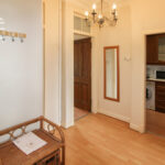 Entry is via the communal close stairway leading to the top floor which shares the landing with one neighbouring flat providing a quiet enclave. The well laid out accommodation on offer comprises; welcoming reception hallway with storage cupboard and gives access to all apartments off. The spacious lounge is flooded with natural light by way of triplicate bay window with an uninterrupted outlook over Dawsholm Park and offers generous dimensions to accommodate modern furnishings - perfect for relaxing and entertaining in equal measure. The galley kitchen incorporates wall and base mounted units with fitted worktop and is equipped with electric oven, induction hob, double sink with drainer and space for washing machine and under counter fridge freezer. Positioned to the rear is the bedroom with substantial storage unit and enjoys views over the charming Anniesland townscape via large UPVC double glazed window. The light and airy bathroom completes the specification fitted with a white three piece suite, electric shower over bath and convenient heated towel rail.