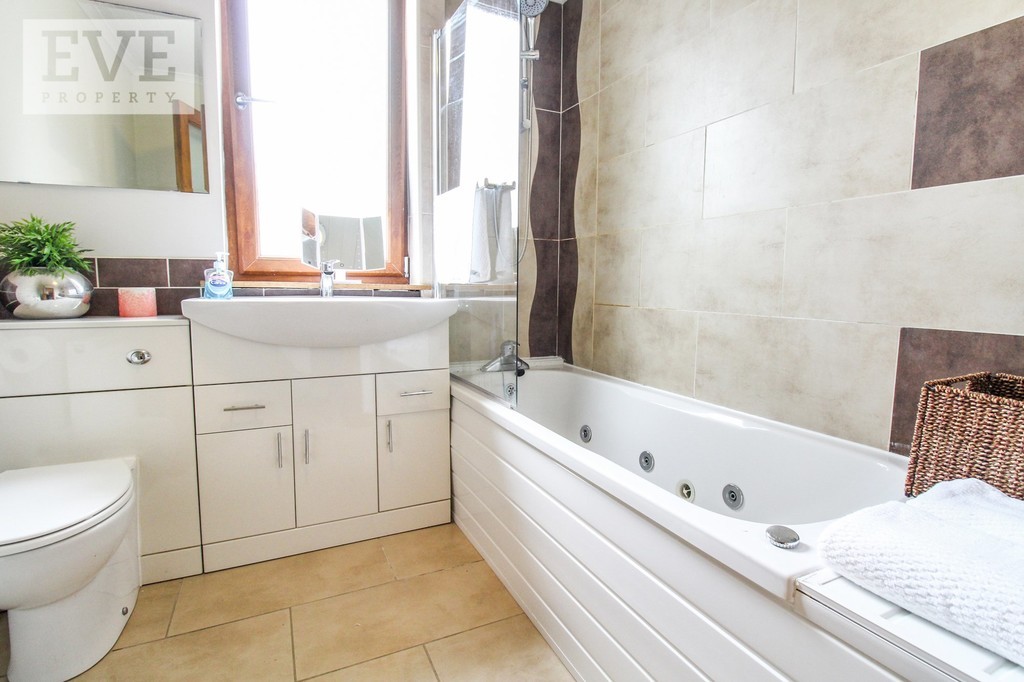 The lower level of the property comprises of entrance hallway, lounge/dining room with patio doors leading to the decking area and rear gardens, modern fitted kitchen with integrated oven, hob and dishwasher, utility room, downstairs WC and additional sitting room. The upper level offers four generous size bedrooms with master bedroom with en-suite bath and shower room and family bathroom. Within the enclosed rear gardens you will find decking area and large external garage with electric and heating supply. Further enhancements are gas central heating, double glazing, floor insulation and solar panels. Solar panels generate funds of approx. £650 per year for the current owner.